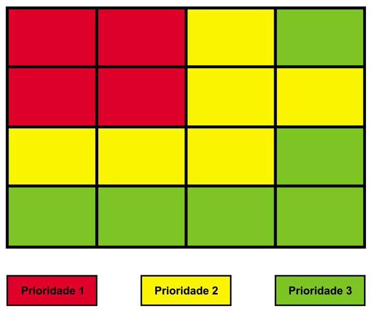 Ainda de acordo com STEVE OUTING e LAURA RUEL, o instinto das pessoas faz com que elas olhem para a área localizada no canto superior esquerdo da tela, conforme é possível observar na representação de áreas de prioridade a seguir.