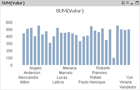 Gráfico de Vendas por Vendedor em que a quantidade de Vendedores é muito grande para que todos sejam exibidos no mesmo gráfico sem a barra de rolagem, desta forma criamos uma variável (depois irei fazer um outro post demonstrando as formas de se criar uma variável) para que o usuário possa controlar o número de vendedores a serem exibidos.