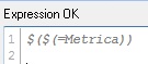 A primeira expansão do sinal de dólar $(=Metrica) é responsável por identificar o conteúdo da coluna Métrica de acordo com a seleção do usuário e a segunda expansão é responsável por avaliar o conteúdo que esta dentro da variável escolhida.