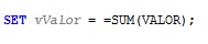 Também podemos criar a variável vValor com o comando LET, mas utilizando apóstrofes. Exemplo: LET vValor = ‘SUM(VALOR)’
