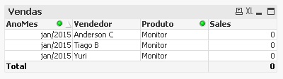Reparem que fiz uma leitura da própria tabela Vendedor, devido a desempenho, e no campo de chave (com a tabela Fato) chamado pk_Vendedor, criei o valor fictício ‘Todos Registros’. Na tabela Fato não existe o valor ‘Todos Registros’ para o campo pk_Vendedor, porém podemos adiciona-lo com o valor zero para a coluna VolumeVendas (Esse é o pulo do gato!).