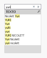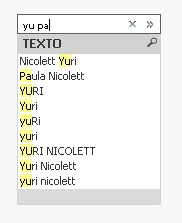 Se digitarmos o texto puro, então o QlikView vai buscar por qualquer palavra que se inicie ou termine com a palavra digitada: