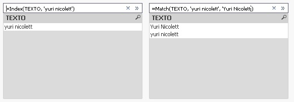 Se realizarmos a busca adicionando o texto entre parenteses, então o QlikView vai buscar o resultado exato, fazendo diferenciação entre Maiúsculo ou Minúsculo apenas para palavras que não possuem espaço: