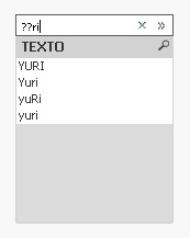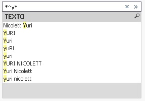 Na pesquisa normal (nenhum caractere curinga), o QlikView buscará palavras que comecem com o caractere da
